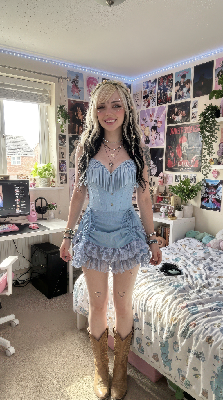 Inspired by early 2000s fashion, this denim look delivers a bold, nostalgic festival statement.