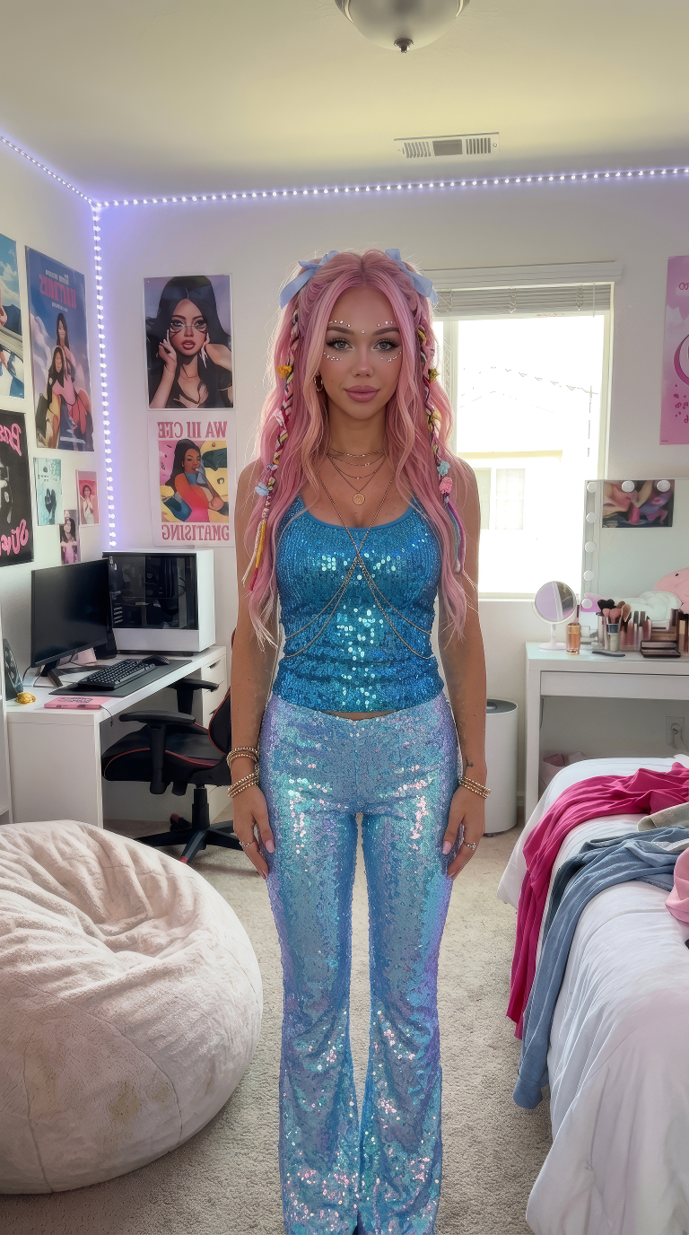 The high-shine finish creates instant visual impact, making it a strong base for building a standout festival outfit. Pairing with the right top is key to achieving a cohesive, elevated look.